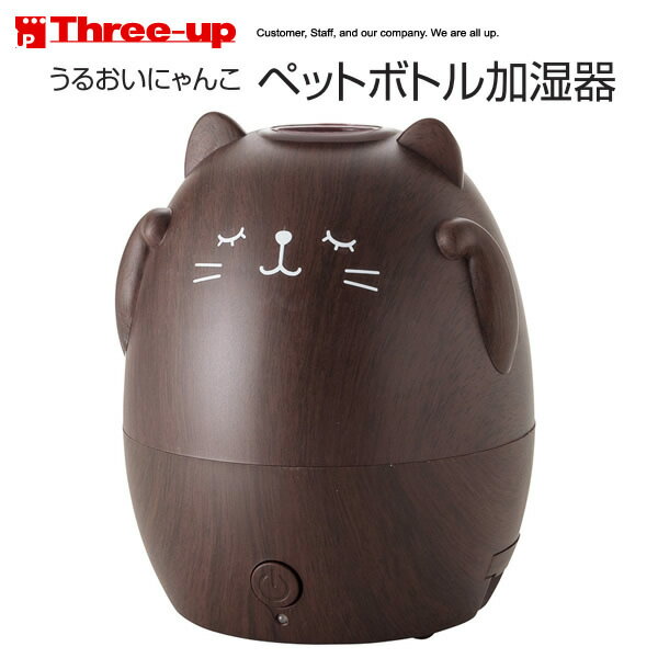 【在庫あり】 Three Up HFT-1628DW ダークウッド スリーアップ うるおいにゃんこ ペットボトル加湿器「ミケネコ・サバネコ・木目調」 【超音波式】【令和 結婚祝い 感謝】
