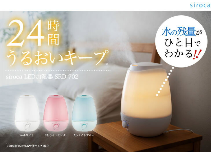 【結婚祝い】二人の門出を祝って贈りたいプレゼント 誕生日・結婚・出産祝い・プチギフトなどのイベントにあったプレゼント・贈り物 【出産祝い】赤ちゃんが生まれた時に贈りたいプレゼント 誕生日・結婚・出産祝い・プチギフトなどのイベントにあったプレゼント・贈り物 【誕生日・記念日】一年に一度、誰もが迎える大切な日に贈りたいプレゼント 誕生日・結婚・出産祝い・プチギフトなどのイベントにあったプレゼント・贈り物 【引越・新築祝い】大切な人の新しい暮らしをお祝いするプレゼント 【昇進・定年祝い・退職祝い】お世話になった方の昇進や定年祝いに贈りたいプレゼント 【還暦祝い】【お土産・プチギフト】【女性へ贈るギフト】【男性へ贈るギフト】【両親へ贈るギフト】【子供・孫へ贈るギフト】【自分へのご褒美】【ハロウィンギフト】【お歳暮】【クリスマス】【成人祝い】【バレンタイン】【ホワイトデー】【母の日】【父の日】【敬老の日】【お中元・夏ギフト】【彼氏へプレゼント】【彼女へプレゼント】【夫へプレゼント】【妻へプレゼント】【歓迎会・送別会・結婚式二次会】【抽選会景品】【祖父へプレゼント】【祖母へプレゼント】【おじいちゃんへプレゼント】【おばあちゃんへプレゼント】【お父さんへプレゼント】【お母さんへプレゼント】【友達・親友へプレゼント】【女子会】【入学祝い】【卒業祝い】【ビンゴゲーム景品】【ゴルフコンペ】【忘年会・新年会】【夏祭り】【秋祭り】【桜祭り 花見】siroca SRD-702 シロカ LED加湿器 [約8畳対応・加湿量最大300ml/h]