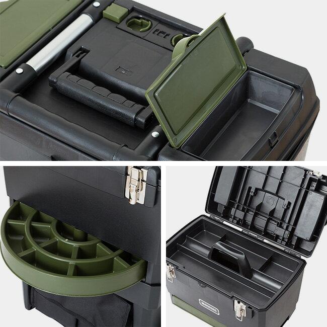 【特典あり】MOLDING モールディング キャリー2BOX キャスター付き ブラック/カーキ 003058[ミリタリーテイストのおしゃれな工具箱 バーベキューやガーデニングやDIYの工具・道具を整理して収納することができるボックス BRID(ブリッド)]